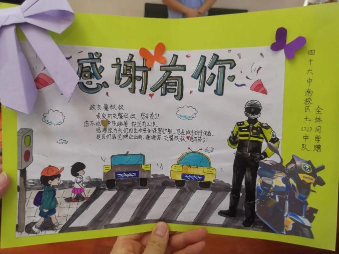 7月7日,合肥46中南校區(qū)師生走進(jìn)交警支隊(duì)濱湖大隊(duì),開(kāi)展“進(jìn)警營(yíng) 學(xué)交法”活動(dòng),臨別學(xué)生遞感謝卡。