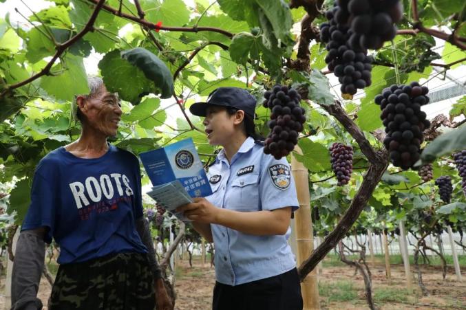 7月8日,巢湖市公安局烔煬派出所民警走進(jìn)葡萄園,以“拉家?!敝v反詐知識(shí)。