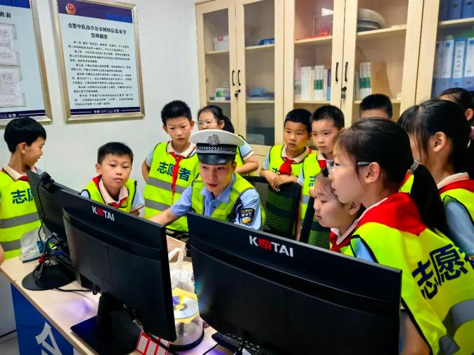 7月11日,交警支隊(duì)廬陽(yáng)大隊(duì)“一廬楓警”志愿服務(wù)隊(duì)邀合肥市海棠花園小學(xué)同學(xué)進(jìn)警營(yíng),學(xué)平安出行知識(shí)。