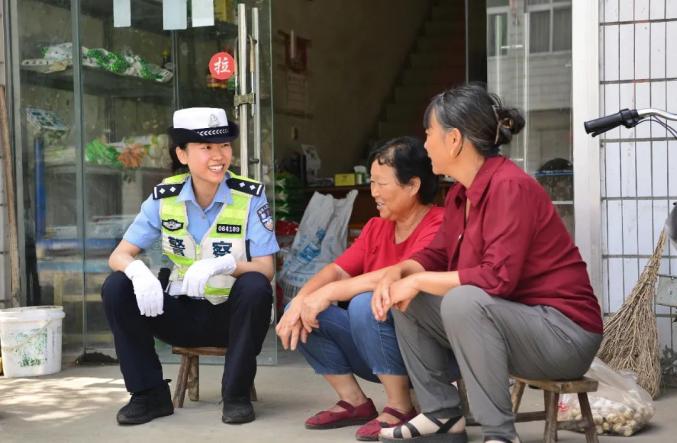 7月8日,巢湖市公安局交管大隊(duì)民警在農(nóng)村公路沿線與群眾話安全。