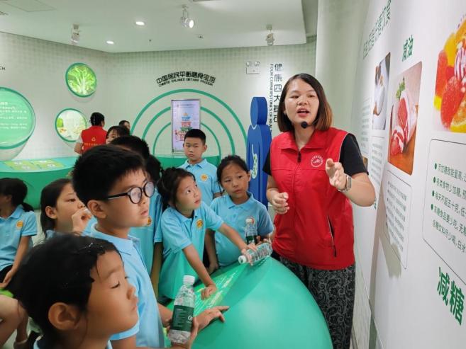 一進(jìn)館內(nèi),“食物的旅行”“3D虛擬騎行”等趣味展區(qū)就吸引了孩子們。在“中國(guó)居民平衡膳食寶塔”互動(dòng)區(qū),孩子們通過(guò)科普視頻學(xué)會(huì)了“每天要吃300 - 500克蔬菜、油不超過(guò)25克、鹽不超過(guò)5克”的膳食原則,明白了減鹽減油的重要性;在“運(yùn)動(dòng)能量消耗比拼”區(qū),孩子們?cè)谀M騎行器上蹬踏,看到屏幕上實(shí)時(shí)跳動(dòng)的能量消耗數(shù)值,懂得了規(guī)律運(yùn)動(dòng)對(duì)控制體重和保持活力很重要。這些互動(dòng)體驗(yàn),把減鹽、減油和體重管理知識(shí)融入了快樂(lè)探索。