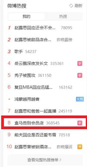 先是“盒馬告別會員店”的詞條登上微博熱搜,接著又傳出“盒馬聯(lián)合創(chuàng)始人沈麗已離職”。