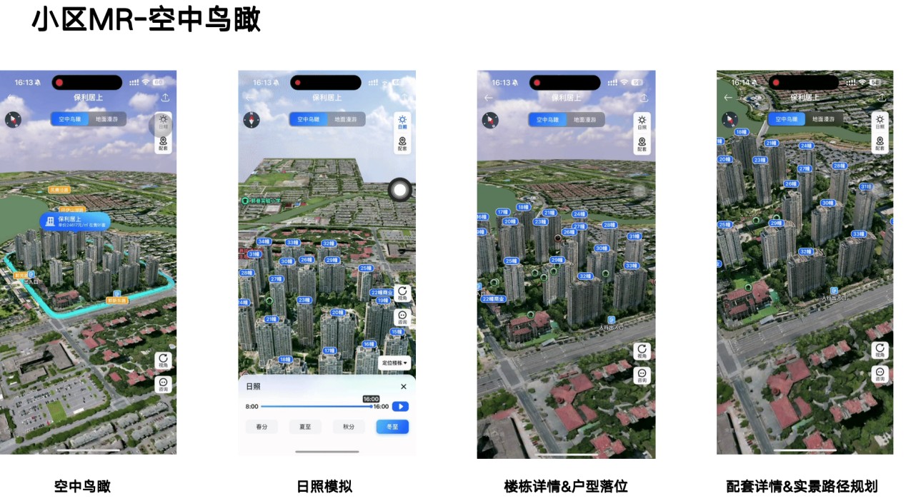 其三,日照模擬真實(shí)復(fù)刻。作為業(yè)內(nèi)首個(gè)在實(shí)景模型中實(shí)現(xiàn)日照模擬的產(chǎn)品,貝殼小區(qū)MR運(yùn)用領(lǐng)先渲染技術(shù),流暢復(fù)刻不同季節(jié)、時(shí)段的光照變化,讓客戶提前判斷房屋采光和遮擋情況,選房更放心。