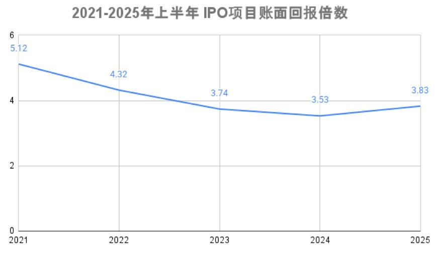從統(tǒng)計數(shù)據(jù)上也能清晰地看出,一二級市場的整體估值差在過去五年持續(xù)收窄。CVSource投中數(shù)據(jù)顯示,2021年中國VC/PE機構(gòu)的IPO項目賬面回報平均還有5.12倍,到2024年降至3.53倍。2025年上半年略有回升,但也僅為3.83倍。