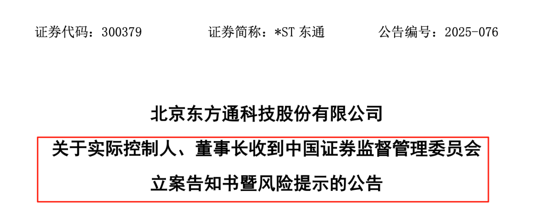 *ST東通董事長被證監(jiān)會(huì)立案,該公司此前已被立案調(diào)查。