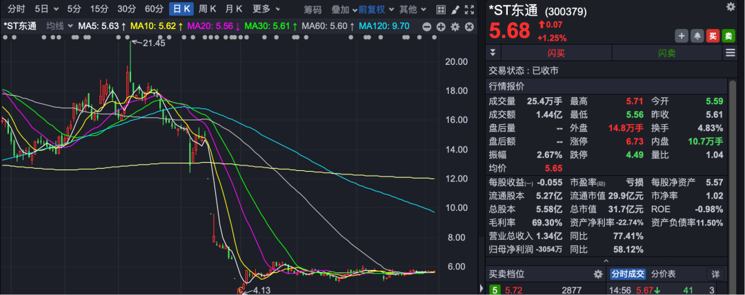 今年以來,*ST東通股價(jià)整體呈大幅下跌趨勢,8月6日收盤價(jià)為5.68元/股,較年內(nèi)最高價(jià)(21.45元/股)已下跌超七成。