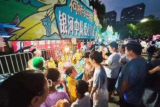 瓜渚湖畔熱鬧非凡,人來人往?!翱聵蚨喟桶贰?huì)稽山夏夜冰爽季”活動(dòng)吸引了日均超10萬人次的客流,很多家長帶著孩子前來游玩。兒童友好市集與共富市集相銜接,每一批次有九個(gè)攤位展出,一排排“萌系”攤位整齊排列,招牌都充滿了“萌味”。小攤主們擺出繪本、兒童玩具、冰凍飲品、盲盒等豐富多樣的商品,吸引著同齡人。