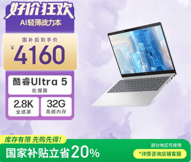 Ultra 5 125H/32GB/1TB/2.8K 120Hz OLED/4160元