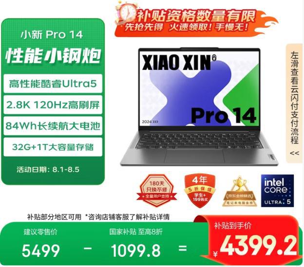 Ultra 5 125H/32GB/1TB/2.8K 120Hz/4399元