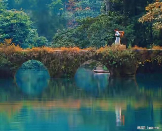 還有人在橋上走,水中倒影山色的畫面,讓人仿佛進入一個個令人驚嘆的世界。