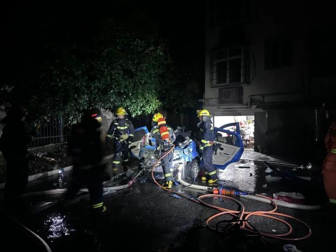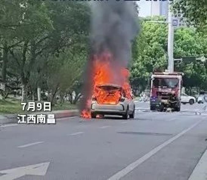 7月24日,上饒市一輛停放在小區(qū)路邊的新能源汽車(chē)起火。