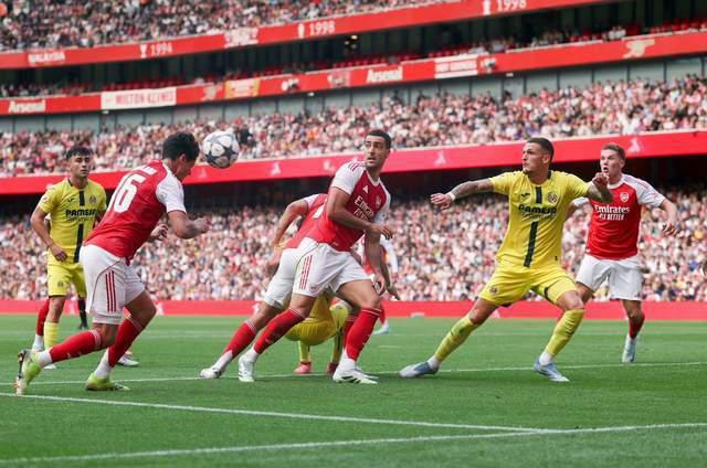 開場僅6分鐘,阿森納獲得絕佳機會,馬丁內利左路傳球,梅里諾跟上傳中,薩卡門前無人盯防面對空門,卻頭球高出橫梁。
