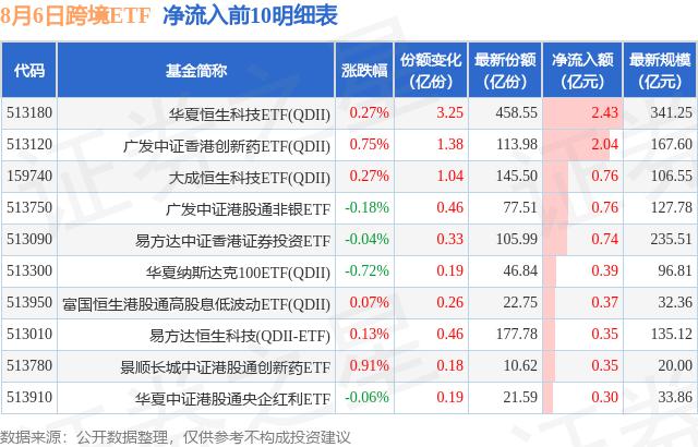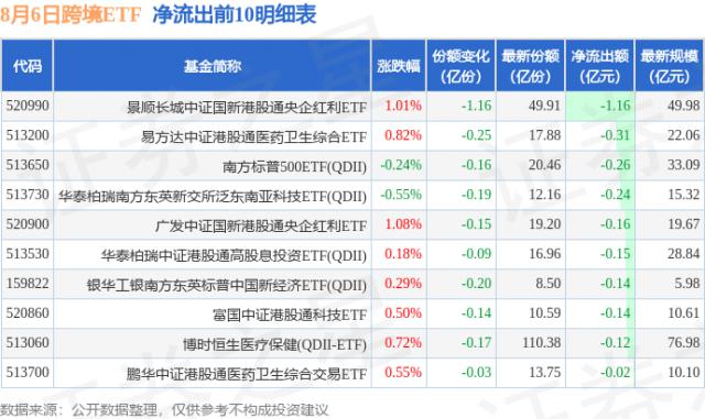 8月6日跨境ETF資金流向情況:凈流入8.62億元