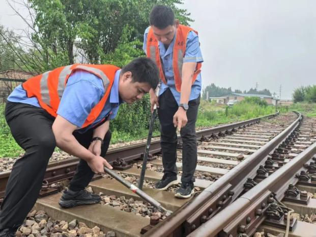 烈日當(dāng)空,北同蒲線上,線路工們行走在鋼軌間,仔細(xì)檢查線路設(shè)備狀態(tài),查找病害隱患,保障行車安全。