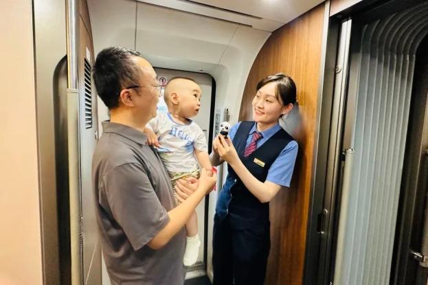 暑運(yùn)期間,客流大幅增長。列車員在車廂過道中來回穿梭,額角滿是細(xì)密的汗珠。他們忙著播報提示、解答疑問、維持秩序。