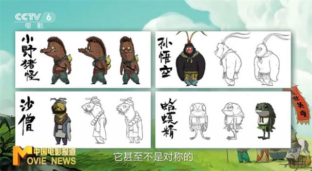 於水:首先造型方面要找一個看起來底層、不太聰明的動物。早期造型和后來不同,顏色有變化,鼻子更長,眼睛更偏向兩邊,后來為了扮唐僧,眼睛要往中間靠,兩邊太不像人類了。