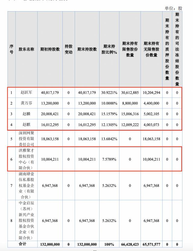 此外,洪雅聚才直接持有公司7.58%股份。龔萬芬和趙麒系洪雅聚才有限合伙人,龔萬芬持有洪雅聚才65.42%合伙份額,通過洪雅聚才員工持股平臺間接持有公司4.96%股份;趙麒持有洪雅聚才1.52%合伙份額,通過洪雅聚才員工持股平臺間接持有公司0.12%股份。