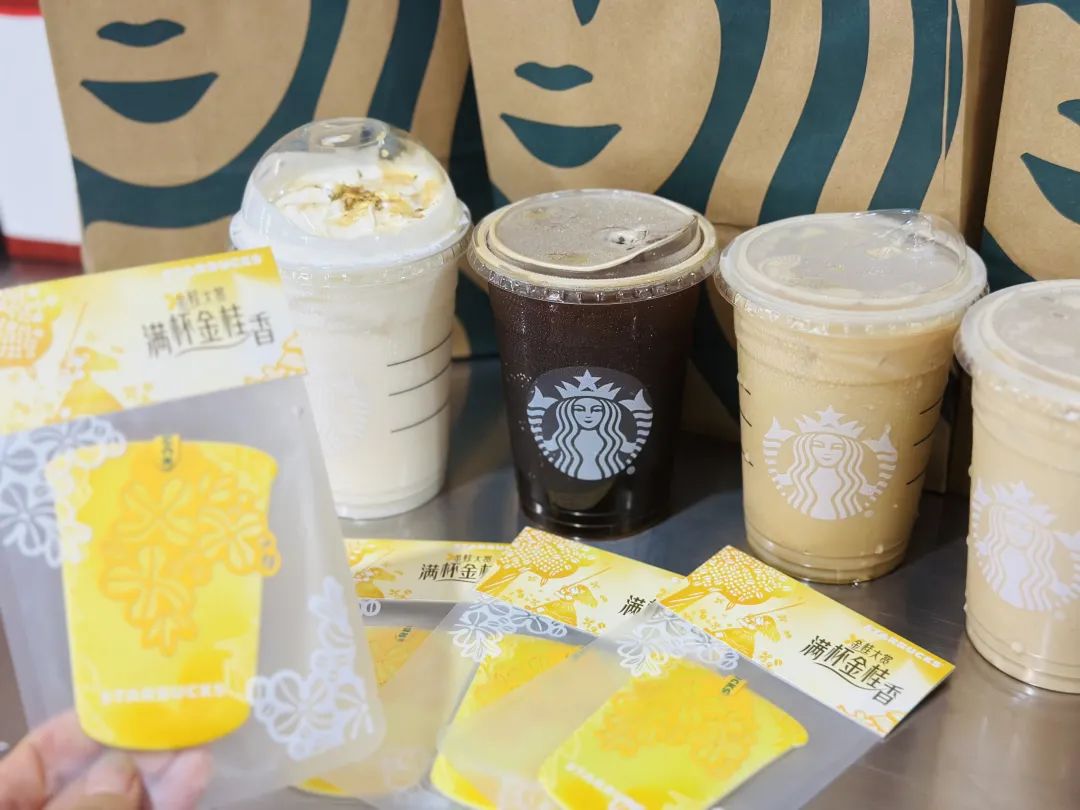 暑氣未消,第一波桂花風(fēng)味飲品已上線。星巴克推出金桂拿鐵、金桂金烘美式、金桂鳳凰單樅茶拿鐵三款新品,以“真實(shí)金桂”為賣點(diǎn),每杯融入70朵湖北咸寧金桂精華,還支持甜度自由調(diào)整。