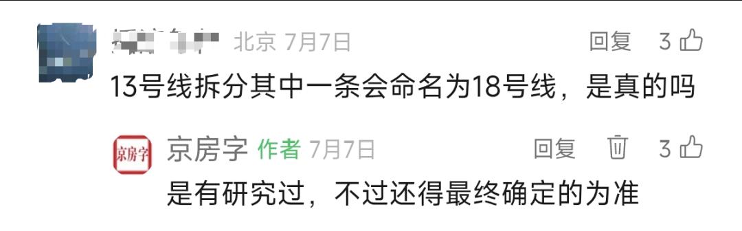 今年7月,在回復(fù)粉絲關(guān)于13號(hào)線拆分其中一條是否會(huì)命名為18號(hào)線的詢問時(shí),我們也表示有相關(guān)研究,但最終以官方確定為準(zhǔn)。