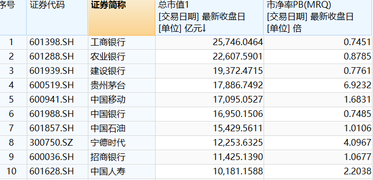 Wind數(shù)據(jù)顯示,截至2025年8月6日收盤,工商銀行、農(nóng)業(yè)銀行、建設(shè)銀行為行業(yè)前三名,穩(wěn)居全市場市值前列。