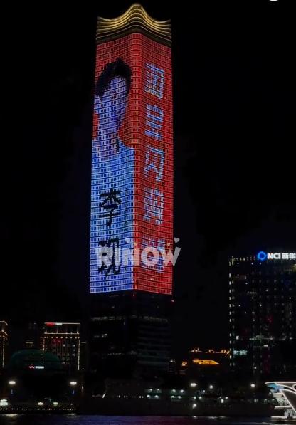 李現(xiàn)的畫面則登上上海白玉蘭廣場(chǎng)大屏,形成了城市地標(biāo)級(jí)曝光。