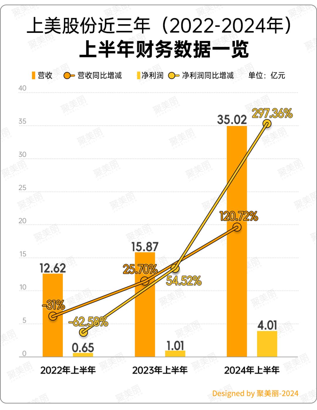 在下行的經(jīng)濟周期中,上美股份仍保持著高增長態(tài)勢。
