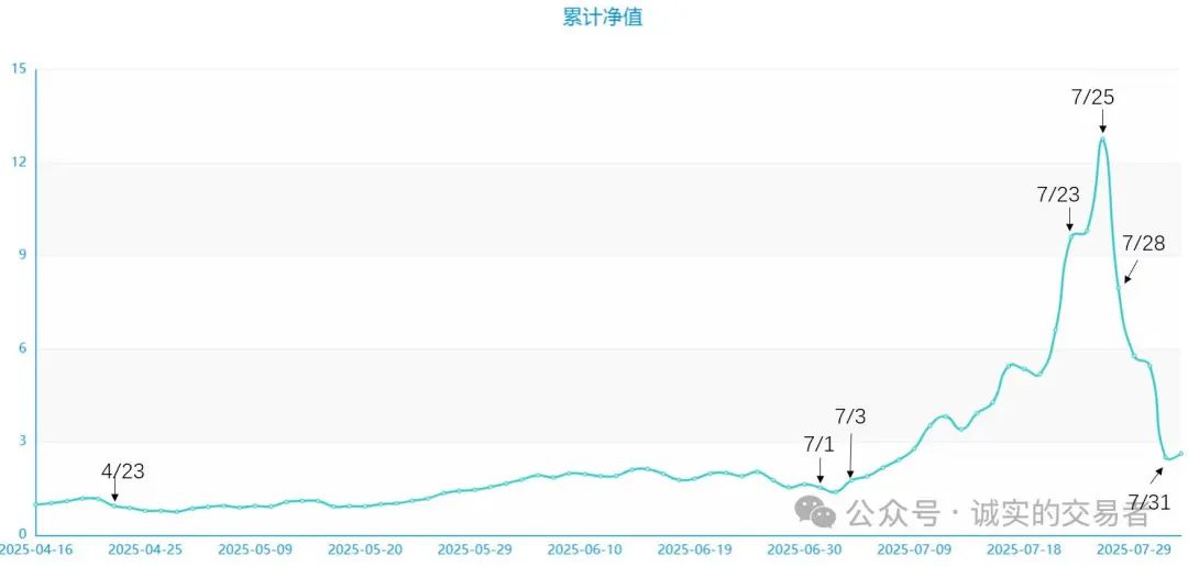即便在本輪“反內(nèi)卷”行情中表現(xiàn)出色的牛散“玗”,從2200萬(wàn)本金最多浮盈近3億,也在7月28日高位出金7000萬(wàn),最終因品種下跌被迫砍倉(cāng),凈利潤(rùn)回撤到7200萬(wàn)[2]。