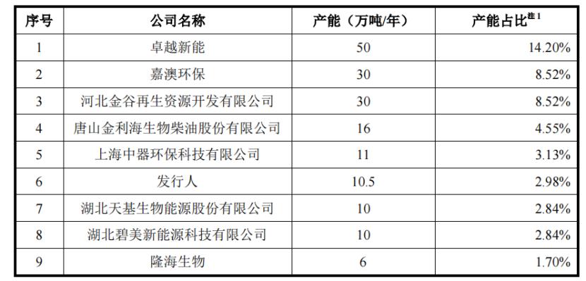 截至2024年底發(fā)行人同行業(yè)企業(yè)生物柴油產(chǎn)能,來(lái)源:招股書(shū)