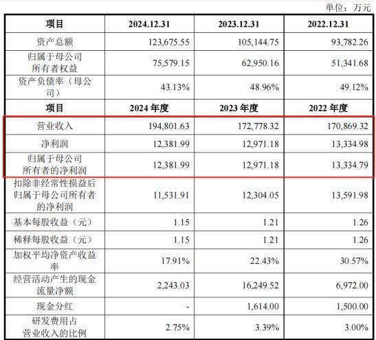 受下游需求增長(zhǎng)等因素影響,近幾年豐倍生物的收入有所增長(zhǎng),但凈利潤(rùn)呈波動(dòng)趨勢(shì)。2022年、2023年、2024年(報(bào)告期),公司的營(yíng)業(yè)收入分別為17.09億元、17.28億元、19.48億元,凈利潤(rùn)分別為1.33億元、1.3億元、1.24億元。2024年,我國(guó)生物燃料出口減少,公司積極應(yīng)對(duì),營(yíng)業(yè)收入保持增長(zhǎng),但凈利潤(rùn)仍小幅下滑。