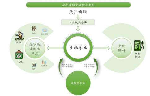 豐倍生物自成立以來(lái)就專注于廢棄油脂資源綜合利用領(lǐng)域,形成了“廢棄油脂—生物燃料(生物柴油)—生物基材料”的廢棄資源再生產(chǎn)業(yè)鏈。