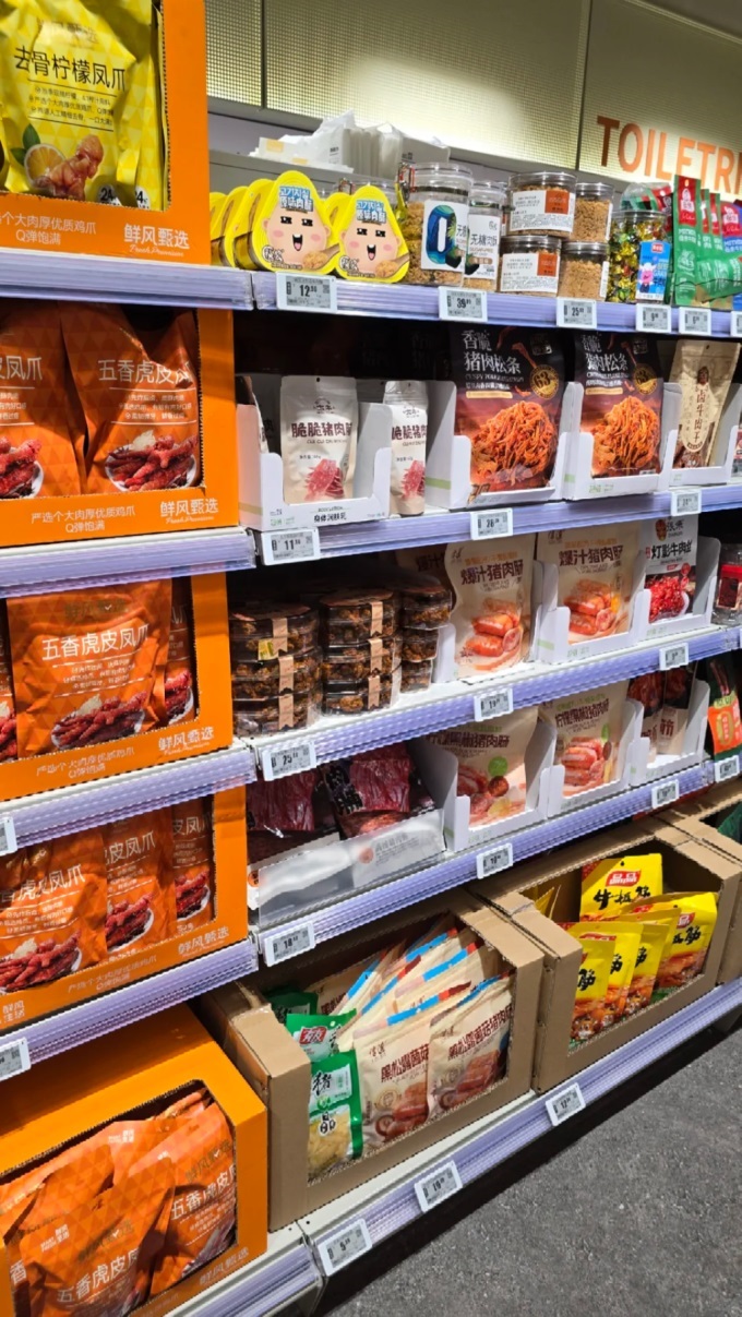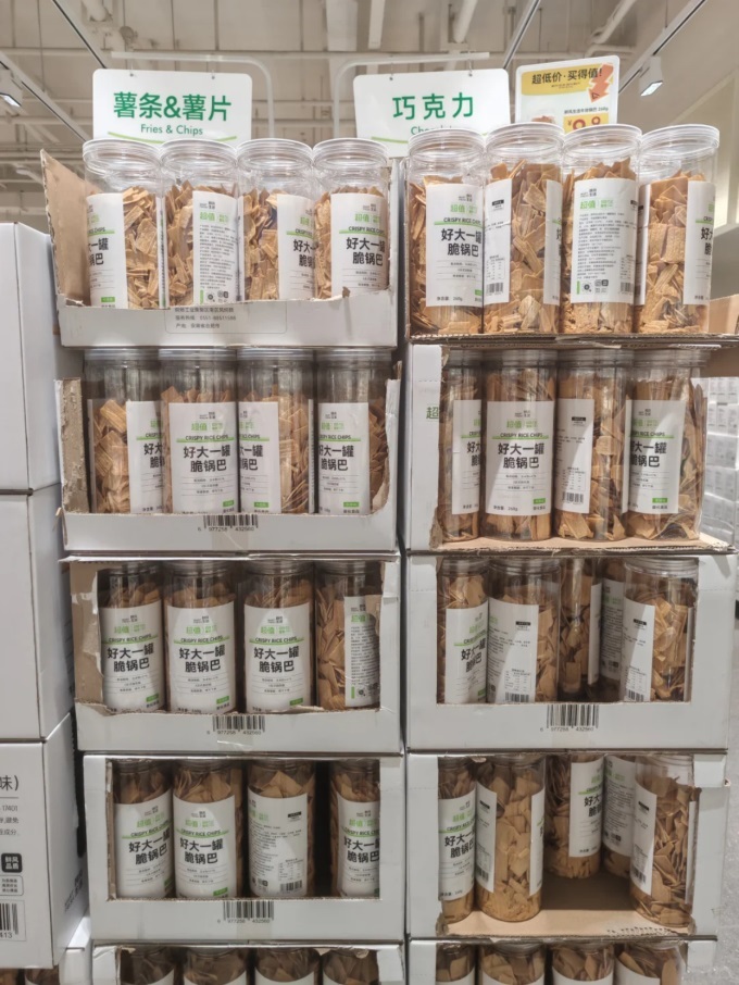 特別值得一提的是,風(fēng)幕冷藏柜里的各種預(yù)包裝肉類極為豐富。而且,鮮風(fēng)生活的“超值”系列自有品牌眾多,像超值牛奶、超值好大一罐脆鍋巴、超值甜糯玉米等。