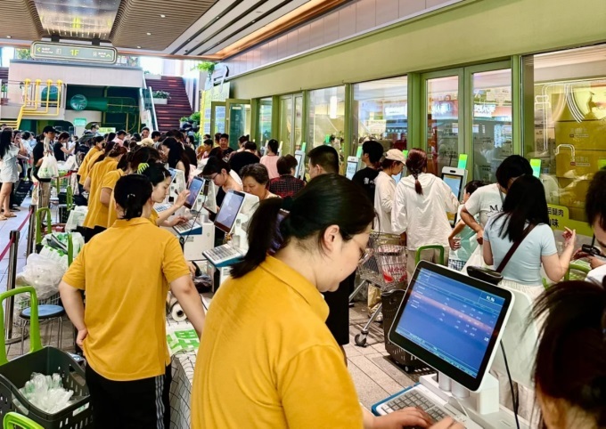 開業(yè)期間,除了原本大量的自助收銀設(shè)備,門店還額外增補(bǔ)了十多臺自助收銀機(jī)。