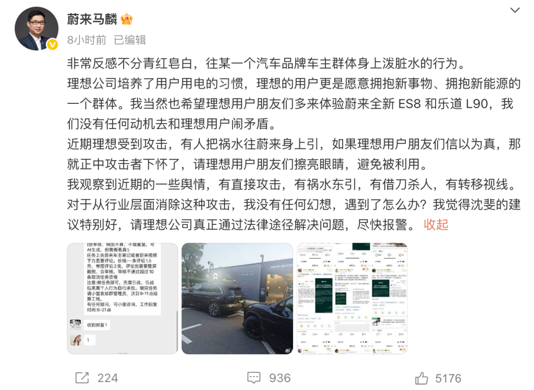 理想汽車維權(quán)風(fēng)波,蔚來高管發(fā)聲支持