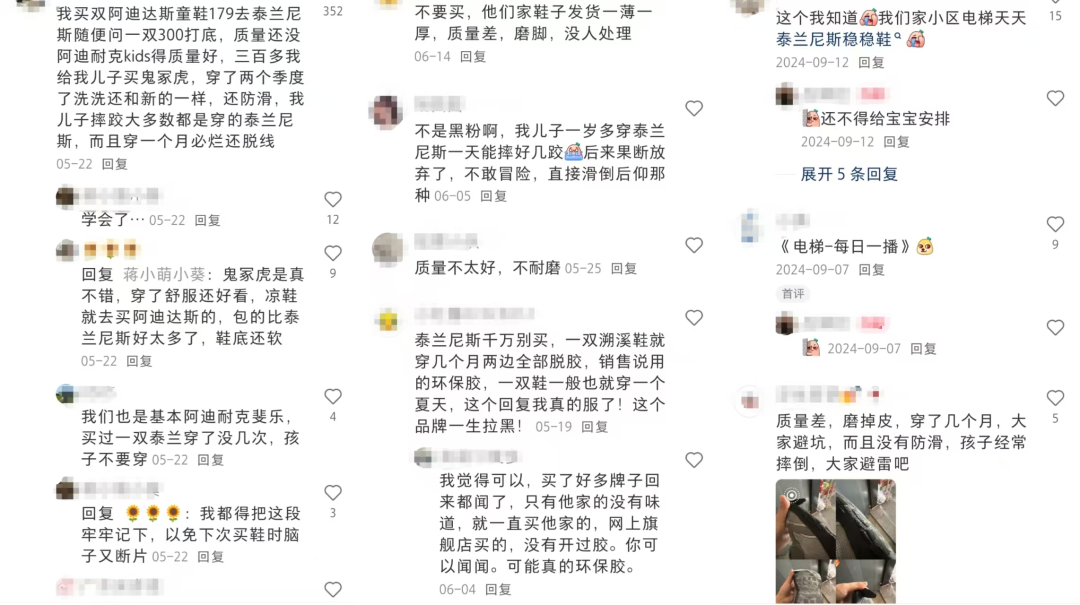 不過,在銷量增長的同時,泰蘭尼斯的童鞋也面臨著越來越多的質(zhì)量問題與過度營銷爭議??褶Z濫炸的宣傳手段雖能在短時間內(nèi)吸引消費者,但也帶來了沉重的費用負擔。在經(jīng)濟波動環(huán)境下堅持走高端路線的品牌,不僅要承受更多的成本壓力,還要面對更多高性價比品牌的沖擊。