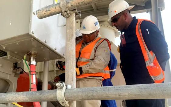 在GTG5擴建工作中,工程師張石面對復雜的電氣系統(tǒng)和極高的設備安裝精度要求,日夜奮戰(zhàn),反復核對圖紙、精心調(diào)整設備位置,確保每一個部件都安裝到位,成功實現(xiàn)項目移交,為試運工作安裝一顆“健康的心臟”提供了穩(wěn)定的電力支持。再艱苦的環(huán)境、再難啃的骨頭也抵擋不住團隊前進的腳步。“我們絕不能拉低‘中國標準’,而是要將‘中國標準’定格在這片土地!”