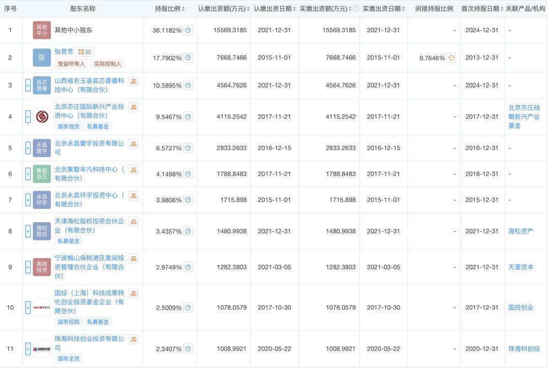 截至2024年底的工商信息顯示,北京亦莊戰(zhàn)略新興產(chǎn)業(yè)基金(下稱“亦莊基金”)、海松資產(chǎn)、天壹資本、國投創(chuàng)業(yè)、珠??苿?chuàng)投分別持有集創(chuàng)北方9.5467%、3.4357%、2.9749%、2.5009%、2.3407%。