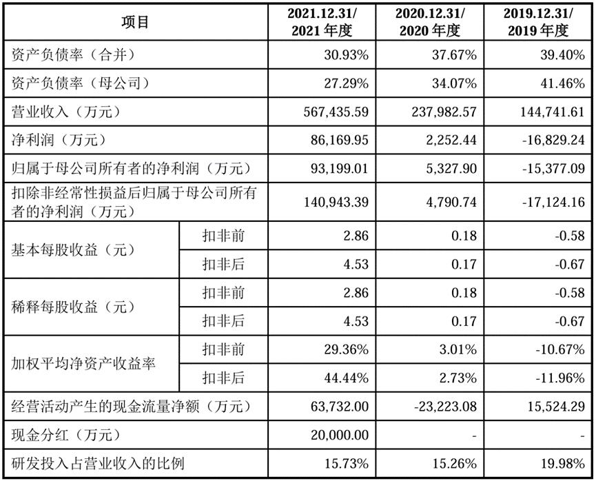 從前次招股書披露的經(jīng)營業(yè)績來看,2021年度的營收已近56億元,歸母凈利潤達(dá)9.3億元。