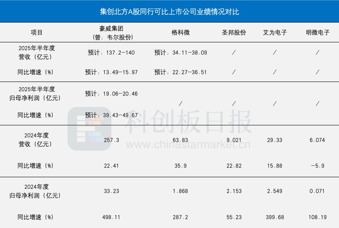 其中A股可比上市公司包括豪威集團(tuán)(曾名:韋爾股份)、格科微、圣邦股份、艾維電子、明微電子。