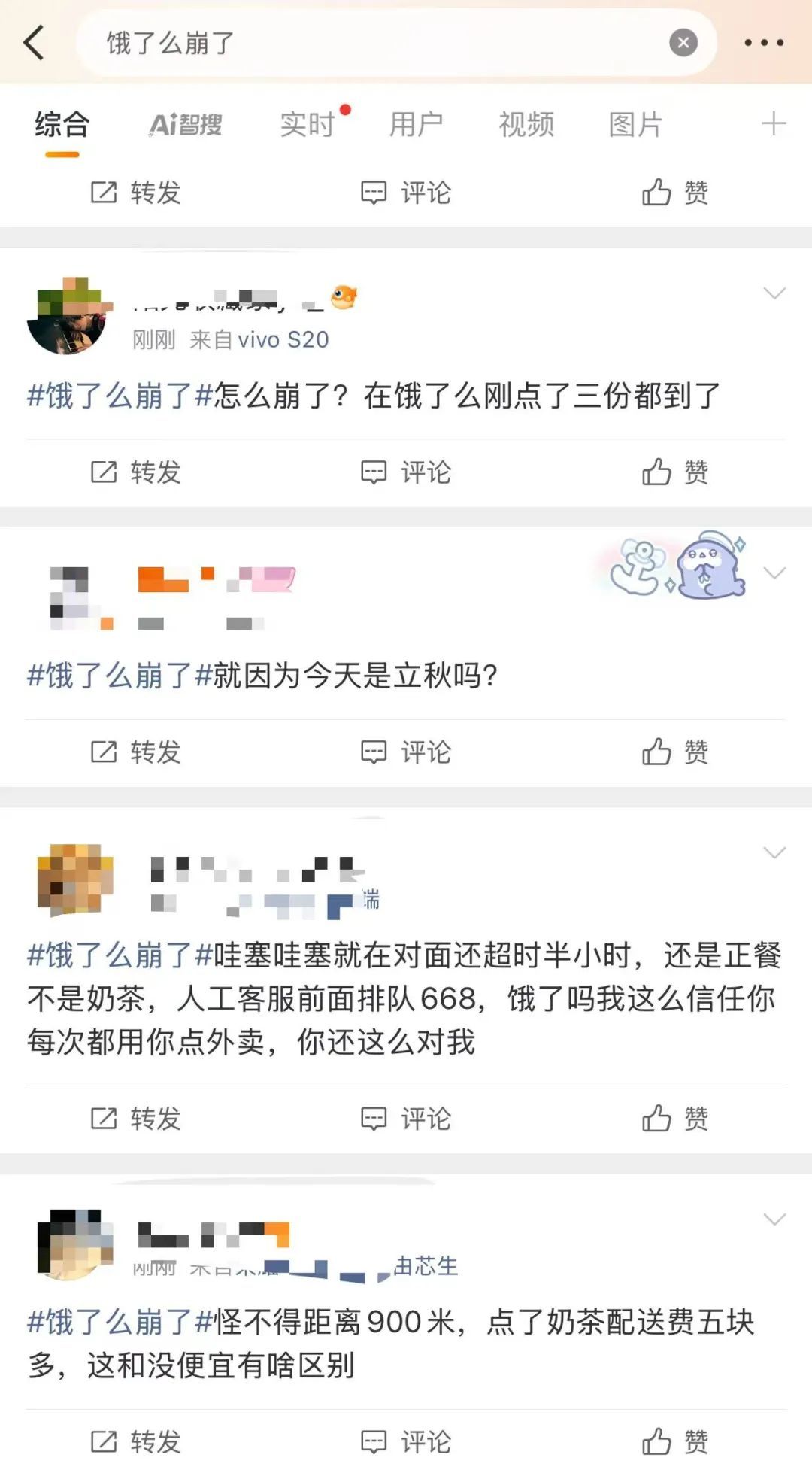 8月7日,#餓了么崩了#相關(guān)話題沖上微博熱搜,不少網(wǎng)友發(fā)文吐槽:“餓了么崩了”“無法退單”“昨天的訂單顯示備餐狀態(tài)”。
