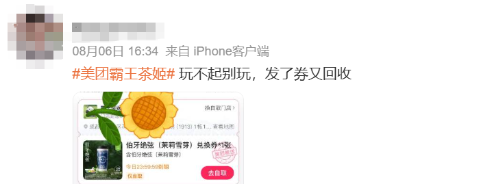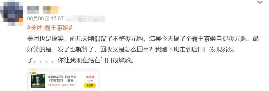 美團(tuán)外賣回應(yīng)霸王茶姬兌換券被“召回”