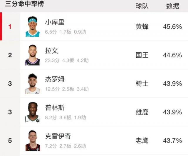 再看看那些在三分命中率榜上有名的球員,就拿賽斯庫里來說,上賽季他場均三分命中率達(dá)到45.6%,在聯(lián)盟排名第一,可他場均僅僅能命中1.2顆三分球,這就是典型的效率高但產(chǎn)量不足。要想拿到三分球能力值90+,關(guān)鍵就是產(chǎn)量和效率都要高。