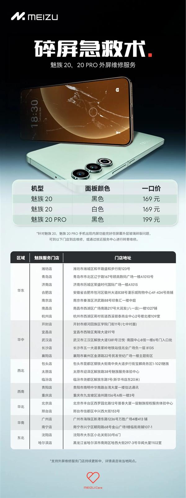 魅族推“碎屏急救術(shù)”:169元換魅族20及20 PRO外屏