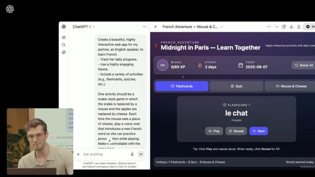 在 OpenAI 的編程演示中,GPT - 5 表現(xiàn)出色,幾分鐘內(nèi)輸出超 200 行代碼,創(chuàng)建了一個(gè)有眾多視覺(jué)元素甚至音頻元素的網(wǎng)站,設(shè)計(jì)場(chǎng)景是幫助伴侶用戶學(xué)習(xí)法語(yǔ)。