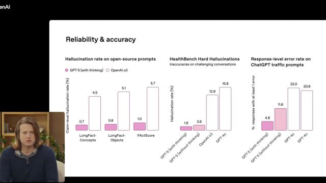 OpenAI 團(tuán)隊(duì)上臺(tái)介紹 GPT - 5 模型,稱其已在包括 Swe Bench 在內(nèi)的幾個(gè)基準(zhǔn)上達(dá)到新水平,其關(guān)鍵關(guān)注點(diǎn)在于提高可靠性并準(zhǔn)確陳述事實(shí)。IT 之家附上 GPT - 5 跑分如下:
