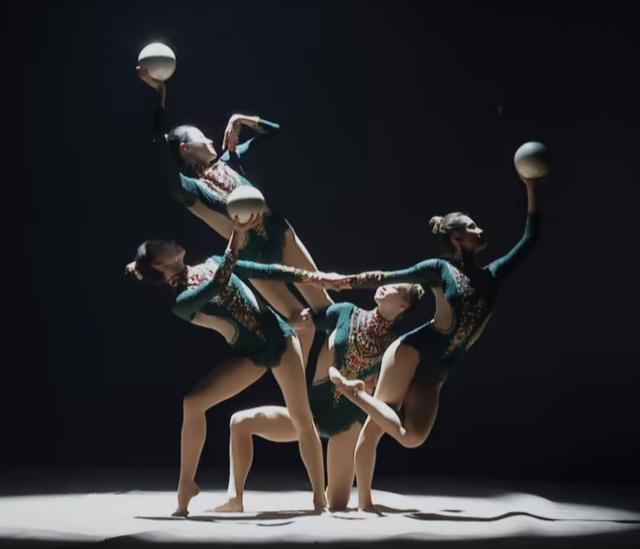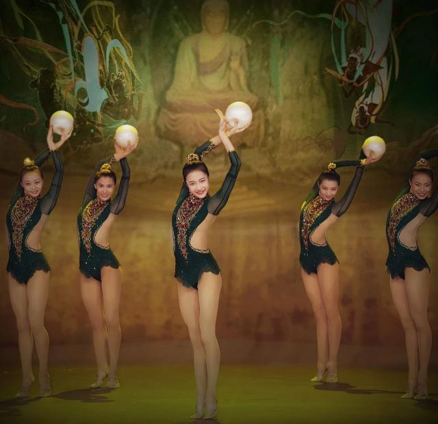 中國(guó)藝術(shù)體操隊(duì)以莫高窟第220窟壁畫(huà)為靈感,把敦煌飛天的飄帶變成了彩帶,用柔美的動(dòng)作重現(xiàn)了壁畫(huà)中“反彈琵琶”的姿態(tài)等,展現(xiàn)出“剛?cè)岵?jì)”的東方體育美學(xué)。