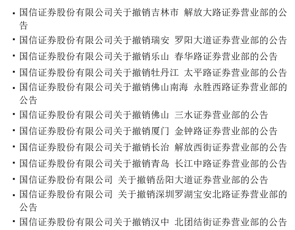 近日,國信證券發(fā)布公告,自9月5日起正式關(guān)閉吉林市解放大路證券營業(yè)部、佛山南海永勝西路等12家營業(yè)部,涉及吉林、佛山、青島和廈門等地。