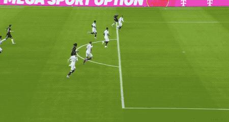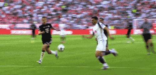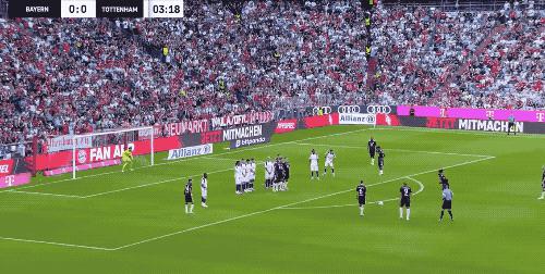 比分領先的拜仁繼續(xù)猛攻,格雷茨卡、科曼、凱恩錯失4次擴大比分的機會。半場結束,拜仁1 - 0暫時領先。