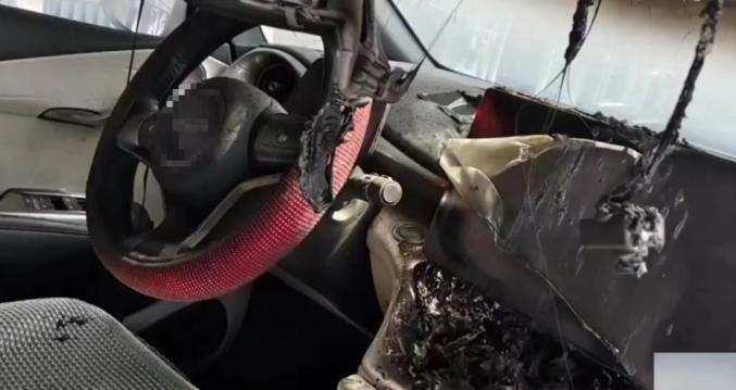 然而,當(dāng)她走到離車僅一米遠(yuǎn)時(shí),竟看到車子在冒煙。更可怕的是,車內(nèi)還有明火,前擋風(fēng)玻璃也碎裂了。王女士立刻報(bào)警求助,消防員及時(shí)趕到將火撲滅。