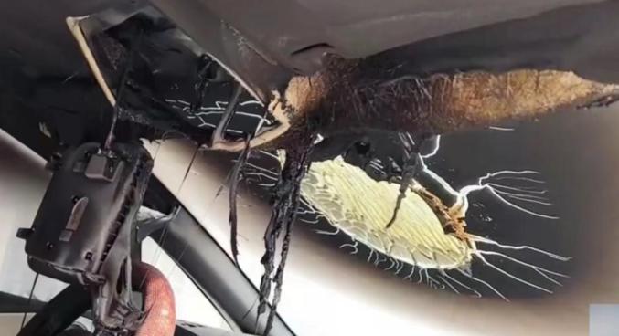 事發(fā)后,對(duì)車輛拆解發(fā)現(xiàn),車子的(原廠)板塊都沒(méi)燒掉,線路外表皮也完好,但在中控區(qū)域發(fā)現(xiàn)了一個(gè)燒壞的物品。經(jīng)王女士確認(rèn),這是她放在這里的磁吸無(wú)線充電寶。