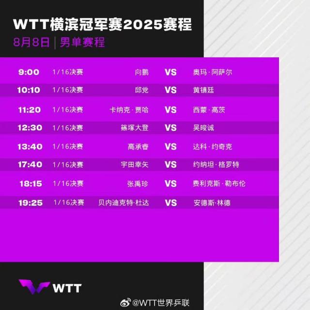 其他晉級選手方面,瑞典名將莫雷高德直落三局戰(zhàn)勝尼日利亞選手阿魯納;東道主選手張本智和、戶上隼輔、松島輝空均擊敗各自對手晉級 16 強;東道主選手早田希娜、伊藤美誠均晉級次輪。